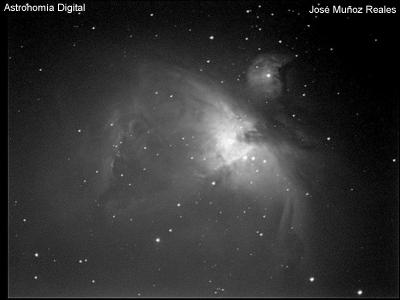 Resultado final del promediado de unas 12 ó 13 imagenes de 30 segundos de las cuales 2 ó 3 han sido desechadas por error de seguimiento, tomadas en el Celestron-8 a F2 con una HX5 sin utilizar toma clara ni oscura. La ventaja de promediar varias imágenes es que reducimos el ruido, hemos empleado la opción de promediar porque en suma lineal se hubiese saturado y otra de las grandes ventajas es que podemos hacer largas exposiciones con seguimientos muy malos.También llevaba opciones potentes como bajar un pixel de cada 4 para hacer un enfoque rápido en la pantalla del ordenador. También podíamos hacer disparos desde el ordenador sin necesidad de bajar las exposiciones, esto era muy potente para hacer planetaria ya que al tener salida independiente de vídeo íbamos viendo si las imágenes eran buenas o malas debido al seeing. Cuando nos salía una buena entonces la bajábamos al ordenador. También permitía sumar imágenes en tiempo real con una estrella de referencia, descartando las malas y aplicando la clara y oscura, lógicamente en vez de una suma lineal que según el tiempo de exposición hubiesen desbordado las imágenes lo que hacia era una media y después en cualquier programa tratador escalábamos los grises. Con estas potentes opciones tengo bonitas fotografías como una espectacular cabeza de caballo hechas promediando hora y media con exposiciones de 160 segundos con un pequeño Celestron-5 y, como quien dice, desde pleno centro de la ciudad de Barcelona.