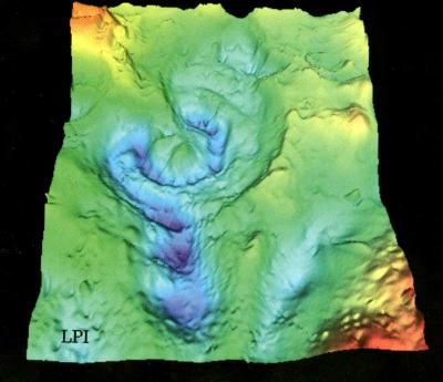 Imagen computarizada en 3D de la estructura del cráter Chicxulub.