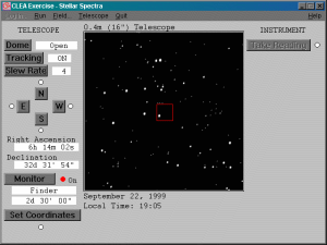 Introducción.Las prácticas de Astronomía CLEA (Contemporary Laboratory Experiencies in Astronomy) resultan una manera didáctica y amena de introducir algunos conceptos astrofísicos básicos para estudiantes y aficionados. A través de una serie de ejercicios prácticos, el alumno aprende a manejar un observatorio virtual, con el que se podrá estudiar desde la evolución de las estrellas hasta encontrar un valor para la constante de Hubble, aprendiendo cómo funciona la fotometría o la espectroscopía, por ejemplo. Los programas son muy sencillos de manejar; eso sí, están en inglés.Durante el último año los hemos usado para las clases de Astronomía, teniendo una gran aceptación. Así, abrimos esta nueva sección en el boletín informativo, para describir a grandes rasgos cómo funciona cada programa, además de un ejercicio práctico. Por motivos de espacio, aparecerá sólo lo considerado más importante. No obstante, puedes bajarte el texto completo desde el web de la Agrupación Astronómica de Córdoba.