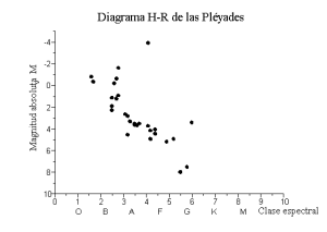Asignamos a cada clase espectral un número Para calcular la magnitud absoluta de la estrella, como sabemos que las Pléyades se encuentran a unos 240 años luz de la Tierra, usando la relación:
