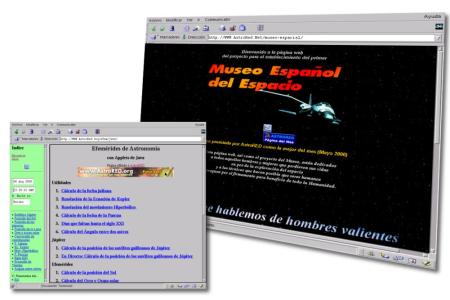 Efemérides de Astronomía con JavaPara un astrónomo aficionado a la observación, posiblemente la hoja de efemérides sea el instrumento más valioso y cotidiano que utiliza durante sus escapadas, sin contar con sus ojos y las extensiones de éstos (esto es, el telescopio y los prismáticos). Son útiles para enterarse de los eventos astronómicos destacados que van a tener lugar próximamente, y proporcionan los datos necesarios para su localización en la bóveda celeste. Lo que pasa con estas tablas es que su información caduca, y además no es universal, pues depende de la situación geográfica del observador. Datos como el orto y el ocaso de un planeta, que son la hora en Tiempo Universal a la que éste sale y se pone por el horizonte, dependen de la latitud y la longitud del observador. Esto obliga a tener unas efemérides locales siempre actualizadas. Para el astrónomo amateur que no tiene quien le proporcione hojas de efemérides, para el astrónomo aventajado que quiere datos de cuerpos celestes que no suelen aparecer en estas tablas, o simplemente para el que quiere tener unas efemérides a medida, la posibilidad de calcular todos estos datos in situ se antoja imprescindible. Es por esto que existen programas informáticos dedicados a esto, como son el Windows Ephemerid Tools para Windows, o el X-Ephem para Linux. Pero desde hace un tiempo también podemos hacerlo en Internet, gracias a Joaquín García Ferrer, que ha colocado en la Web una página desde la que podemos generar efemérides a golpe de ratón. Los cálculos los realiza el ordenador del usuario mediante código programado en Javascript. La ventaja de esto es que es posible para un programador que conozca este lenguaje leer el código fuente del script, y aprender los métodos matemáticos utilizados para calcular los datos. Además, Joaquín García proporciona explicaciones detalladas de los conceptos que entran en juego y los métodos de cálculo utilzados. En esta web afiliada a la comunidad AstroRED se pueden realizar cálculos sobre la posición de los planetas y la luna, su orto y ocaso, ángulo entre dos astros arbitrarios, posiciones cartesianas de los satélites galileanos, conversión entre multitud de coordenadas, fechas julianas, etcétera. También se incluye una cuenta atrás que indica el tiempo que queda para la llegada del siglo XXI, y se explica por qué empieza en el año 2001, en vez de en el 2000, como la intuición podría indicarle a muchos. Sin embargo, si lo que buscamos son datos de asteroides o cometas, o casos especiales como ocultaciones y conjunciones, tendremos que recurrir a programas informáticos más completos como los indicados arriba.